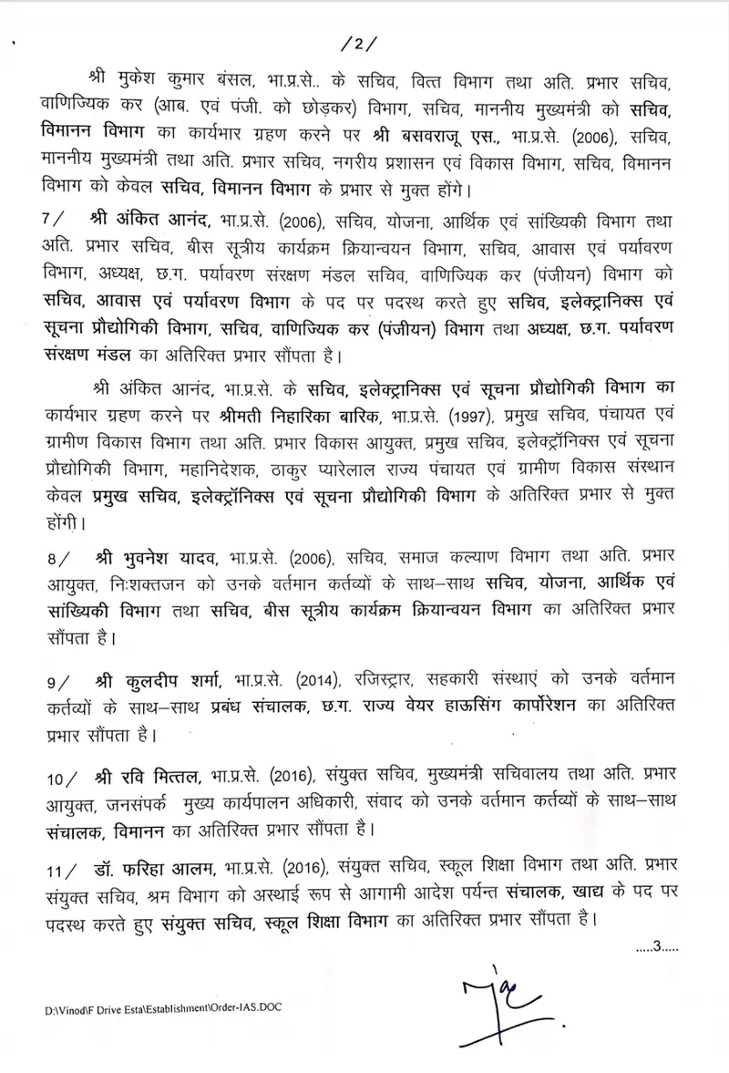 IAS Transfer 2025/राज्य शासन ने मंगलवार को भारतीय प्रशासनिक सेवा के अफसरों के नवीन पदस्थापना आदेश जारी किए है।देखे सूची