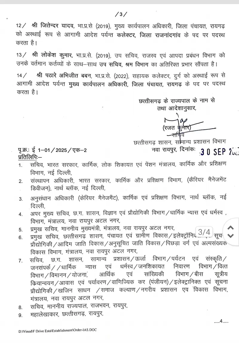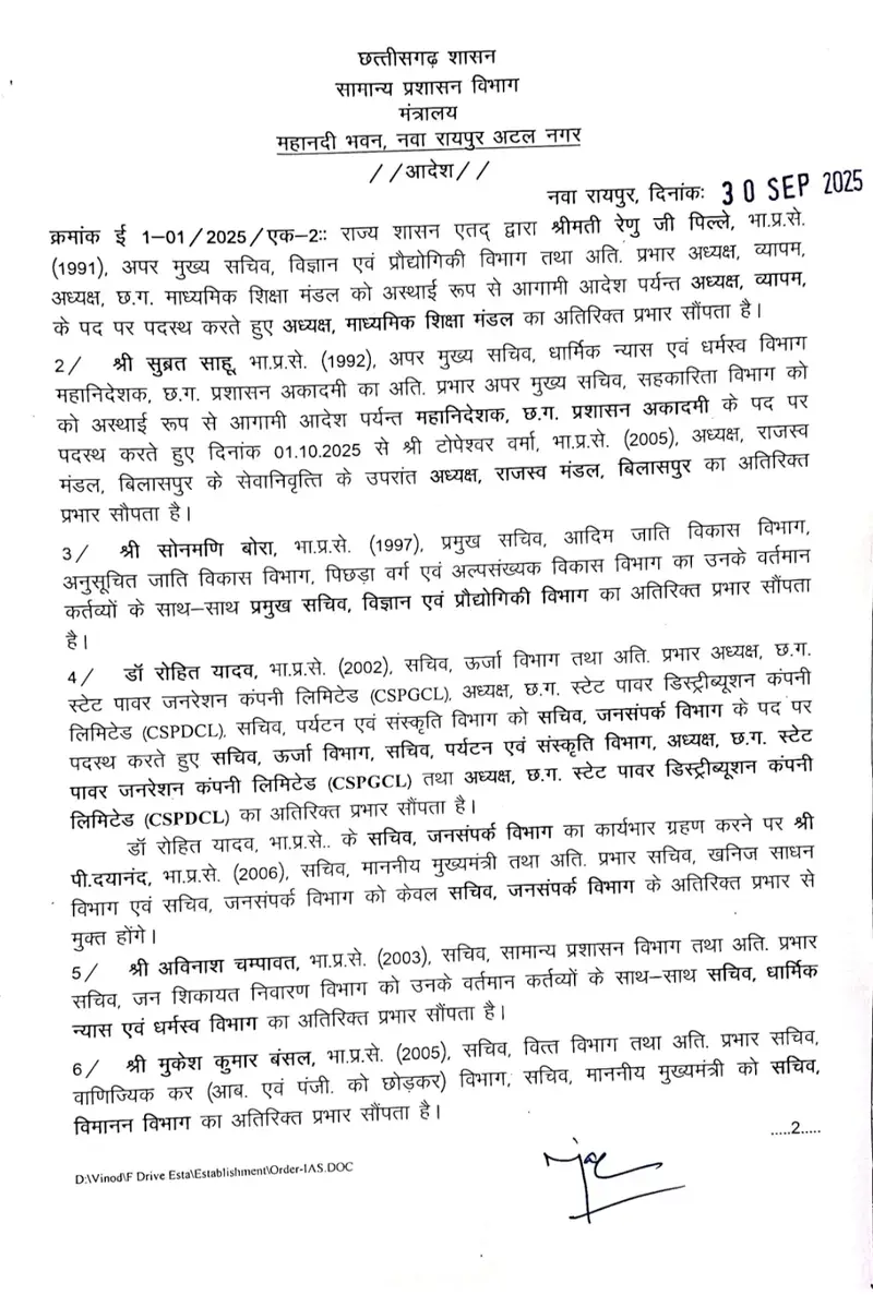 IAS Transfer 2025: भारतीय प्रशासनिक सेवा के अफसरों की नवीन पदस्थापना,आ : IAS Transfer 2025: भारतीय प्रशासनिक सेवा के अफसरों की नवीन पदस्थापना,आदेश जारी